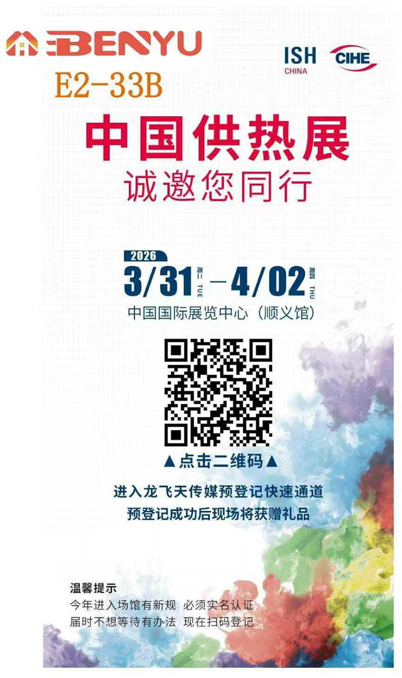 Wir freuen uns, bekannt zu geben, dass Zhejiang Benyu HVAC Technology Co., Ltd. seine Kernkomponenten für Fußbodenheizungen auf der ISH China & CIHE – China International Heating Ventilation Air-Conditioning, Sanitary and Comfort Home System Exhibition 2026 präsentieren wird.